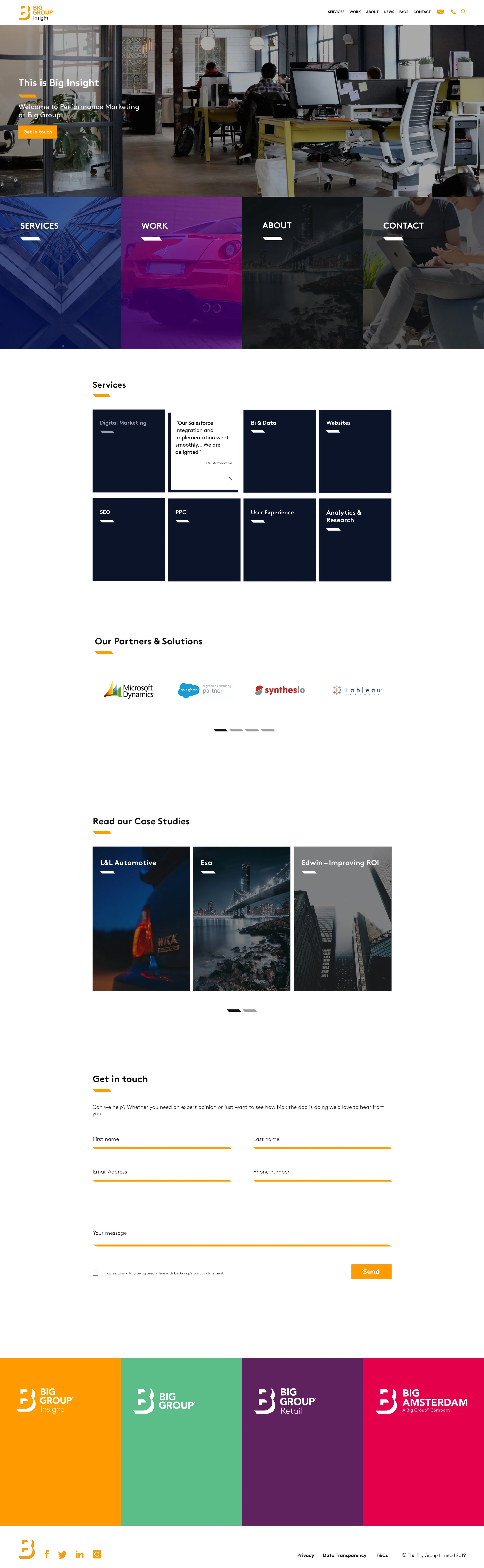The Big Group were expanding and needed a webpage to include the next part of its extension, Insight. The only difference was that this webpage consisted of many levels to branch off to different parts of the Big Group company website as a whole. more to follow